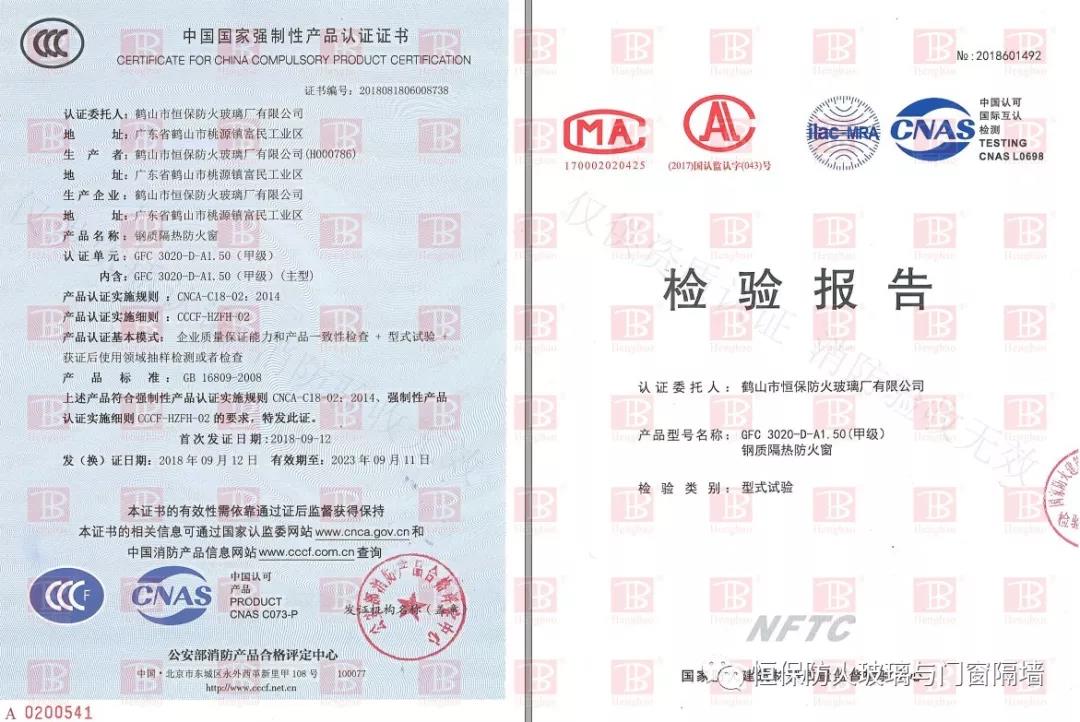 鶴山恒保經(jīng)過(guò)多年努力,終于解決這一行業(yè)難題:成功通過(guò)超大甲級(jí)防火窗國(guó)家CCC認(rèn)證,3000mmX2000mm超大尺寸版面,整窗都能滿(mǎn)足防火完整性和防火隔熱性1.5小時(shí)的要求,既符合建筑設(shè)計(jì)防火規(guī)范的要求,又具有窗的通透性,美觀實(shí)用。完美解決了地鐵高鐵消防控制室超大甲級(jí)防火觀察窗合法化的問(wèn)題!